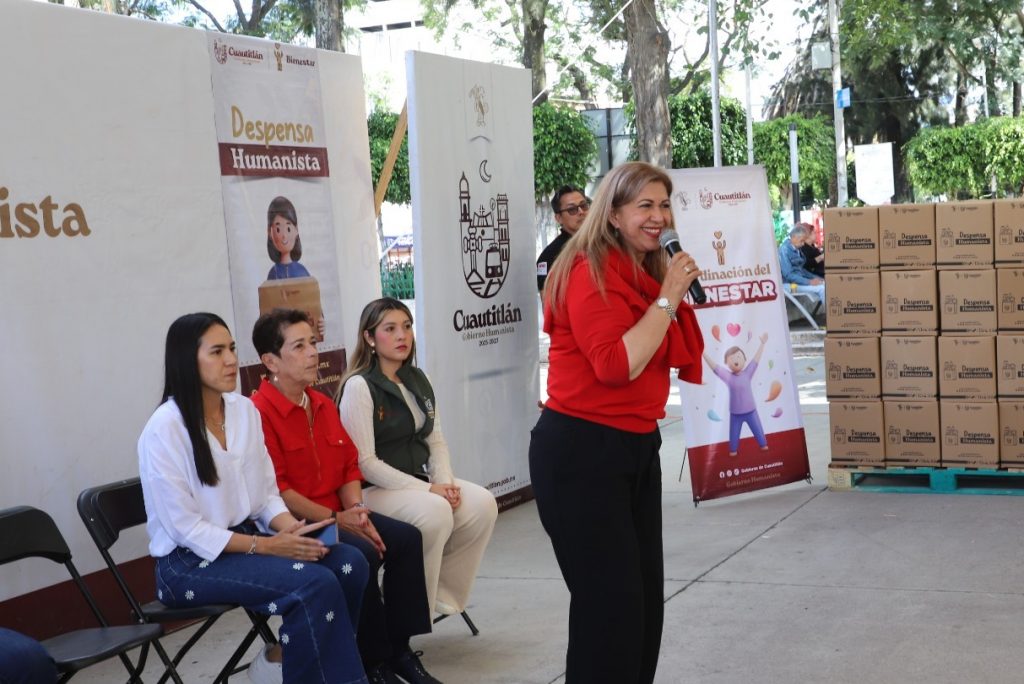 El Gobierno de Cuautitlán, encabezado por la presidenta municipal Juanita Carrillo Luna, llevó a cabo la tercera entrega del programa “Despensa Humanista”. El evento, realizado en la Concha Acústica del Parque de la Cruz, contó con la participación de integrantes del Cabildo y de cientos de familias beneficiarias. Esta iniciativa, inspirada en la visión de “primero los pobres”, busca ofrecer un apoyo tangible a las familias más vulnerables de la comunidad.