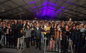 El Presidente Municipal, Pedro Rodríguez, expresó su agradecimiento tanto al grupo musical como a todos los asistentes, a quienes entregó la estatuilla “Aztlán” como símbolo del reconocimiento del pueblo atizapense a su talento. Durante una breve pausa en el show, el edil compartió un mensaje de bienvenida y nostalgia, asegurando: “Gracias por estar aquí, esto es para que nos recuerden y regresen el próximo año”. El entusiasmo era palpable, con miles de fanáticos congregados desde tempranas horas del domingo en la Explanada Municipal.