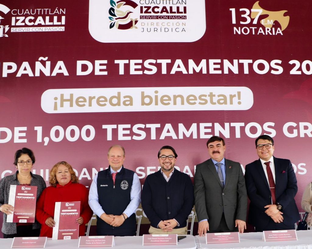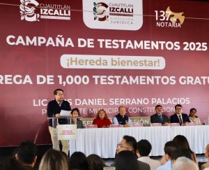 #CuautitlánIzcalli, #EstadoDeMéxico.- En un hecho sin precedentes en el municipio, el Presidente Municipal, Daniel Serrano Palacios, encabezó la histórica entrega de mil testamentos gratuitos, gestionados a través de la exitosa campaña ¡Hereda Bienestar!. Esta acción forma parte de la primera etapa de un programa impulsado por el Gobierno local, cuyo objetivo central es proporcionar seguridad, tranquilidad y control sobre la distribución de bienes. La iniciativa subraya el compromiso de la administración con el bienestar y la protección patrimonial de las familias izcallenses.