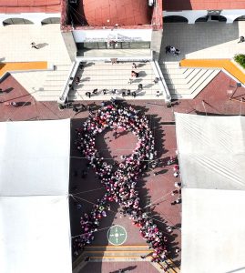 En el marco del Día Contra el Cáncer de Mama, el alcalde Pedro Rodríguez, acompañado por cerca de 800 ciudadanos, encabezó una Magna Jornada Médico-Asistencial en la explanada del Palacio Municipal. El evento simbólico incluyó la formación de un mega moño humano, con el propósito de recordar la importancia de la autoexploración mamaria. Esta acción busca concienciar a la población sobre la relevancia de la detección temprana para afrontar esta enfermedad con éxito.