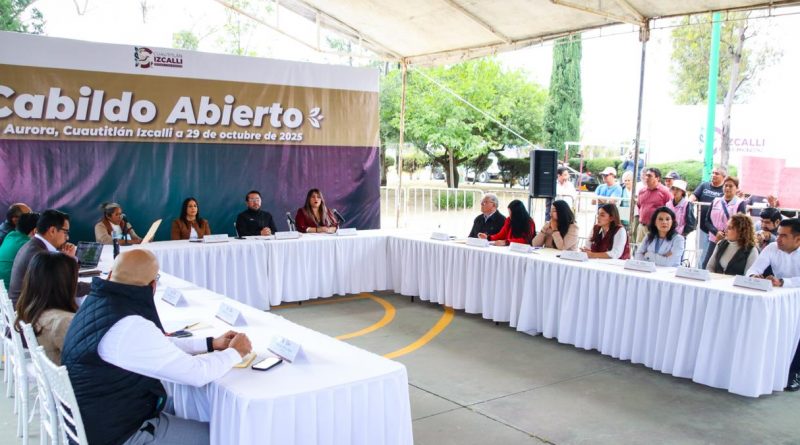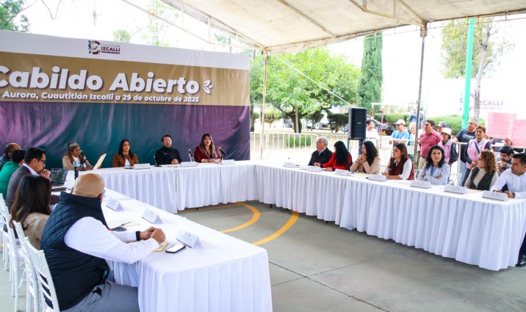 #CuautitlánIzcalli, #EstadoDeMéxico.- El Ayuntamiento de Cuautitlán Izcalli celebró la Vigésima Séptima Sesión Pública en modalidad de Cabildo Abierto, encabezada por el Presidente Municipal, Daniel Serrano Palacios, realizada en las canchas de Cerrada 20 de Noviembre, en la comunidad de La Aurora. Este ejercicio democrático permitió que las y los integrantes del cuerpo edilicio escucharan de manera directa las peticiones y propuestas de la ciudadanía, muchas de las cuales habían permanecido “sin respuesta por parte de administraciones anteriores” durante años.