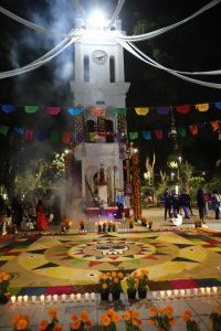 La celebración fue encabezada por la Presidenta Municipal, Juanita Carrillo Luna, quien dio vida a un recorrido lleno de color, arte y simbolismo por todo el centro histórico del municipio. El trayecto ofreció distintas estaciones temáticas que representaron, de manera didáctica y visual, los nueve niveles del Mictlán. Para ello, se integraron espacios emblemáticos como el Jardín Principal, la Plazuela y la Concha Acústica, en un circuito que se extendió desde Itzpapálotl hasta la Casa de Cultura.