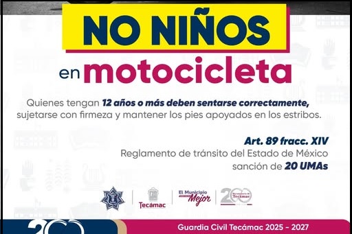 “¡Las reglas son claras!”: Gobierno y Guardia Civil de Tecámac lanza campaña para evitar que niños y niñas viajen en motocicleta / @rosi_wong @AyuntaTec2025 >>>