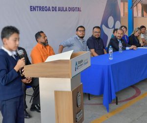 La ceremonia inaugural tuvo lugar en la Primaria “Lázaro Cárdenas del Río”, cuyo espacio digital fue equipado con 20 computadoras de última generación, beneficiando directamente a la totalidad de la comunidad estudiantil del turno vespertino. El Alcalde, acompañado por el Cuerpo Edilicio, explicó que su gobierno tiene una apuesta clara por la instrucción: “En la administración anterior entregamos aulas de cómputo en el turno matutino, pero había una gran deuda con todas las escuelas del turno vespertino y hoy queremos apoyarlas con la entrega de sus aulas digitales”.