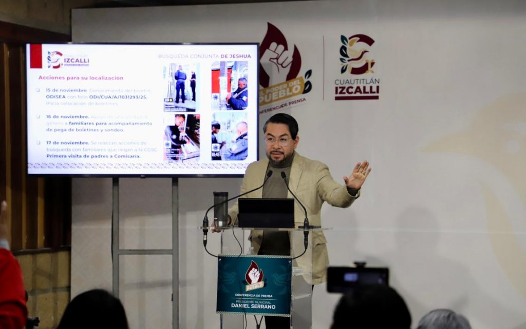 #NiUnoMásDesaparecido #BusquemosAJeshua —– #CuautitlánIzcalli, #EstadoDeMéxico.- El Gobierno de Cuautitlán Izcalli, encabezado por el Presidente Municipal Daniel Serrano, ha reafirmado su compromiso inquebrantable con la búsqueda y localización de Jeshua Cisneros Lechuga, desaparecido desde el pasado 13 de noviembre de 2025, trabajando de manera coordinada con la Fiscalía General de Justicia del Estado de México (FGJEM) desde el primer día del conocimiento de los hechos. Durante su conferencia «El Poder del Pueblo», el edil detalló las acciones emprendidas, que incluyen la profusa difusión de boletines y la ejecución de operativos de búsqueda en diversas comunidades tras la recepción de reportes ciudadanos. El esclarecimiento del paradero del joven se ha convertido en una prioridad insoslayable y trascendente para la Administración.