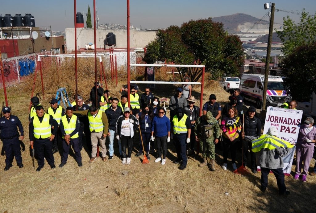 #EspacioPúblico #EdomexTendencia —– #TlalnepantlaDeBaz, #EstadoDeMéxico.- En un esfuerzo sin precedentes por devolver la tranquilidad a las familias de la colonia Lomas Boulevares, el Gobierno de Tlalnepantla, liderado por el alcalde Raciel Pérez Cruz, ejecutó la Jornada por la Paz «Juntos al Tequio». Esta estrategia prioritaria, diseñada para la reconstrucción del tejido social, trasciende la simple obra pública al combatir directamente las causas de la inseguridad mediante el rescate de áreas comunes. Al transformar zonas olvidadas en entornos seguros para la convivencia, la administración municipal reafirma que la paz se edifica con servicios dignos y espacios recreativos vivos.